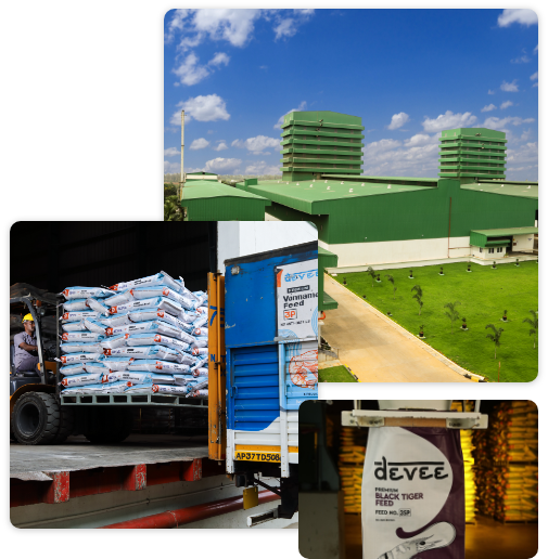 Devi Sea Foods introduced premium Vannamei shrimp feed to cater to growing demand for high quality feed in India and giving better control over its Supply Chain. Since commencing its operations in 2016 with an annual production capacity of 45,000 tons, we have expanded capacity to 180,000 tons of shrimp feed with two manufacturing locations.